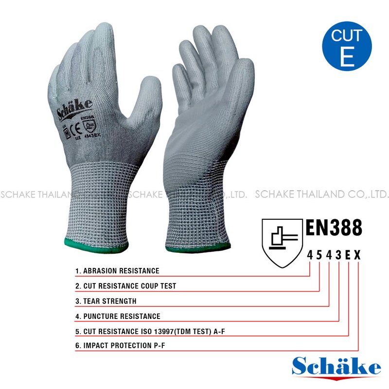 Schake Hi-Cut Cut Level E HPPE (HIGH PERFORMANCE POLYETHYLENE) Gloves Coating PU