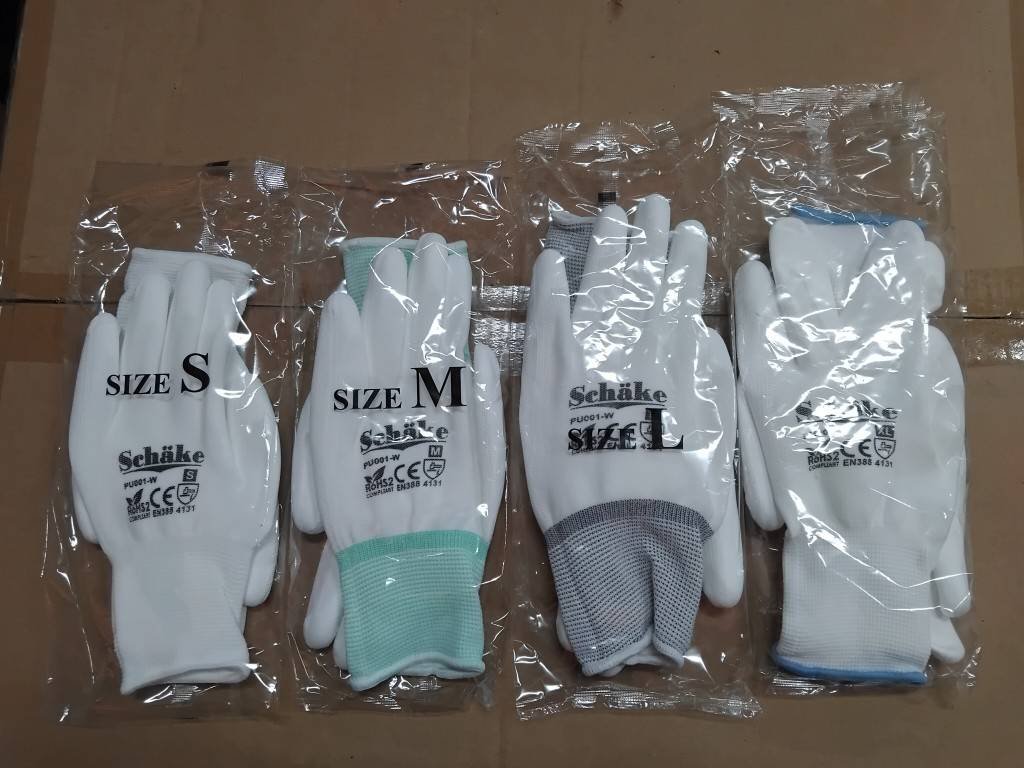 schake ถุงมือไนล่อนเคลือบ PU เต็มฝ่ามือสีขาว มาตรฐานEN388 4131 ถุงมือกันบาดระดับ1 ถุงมือช่าง ประกอบชิ้นงาน จับอุปกรณ์อิเล็กโทรนิกส์